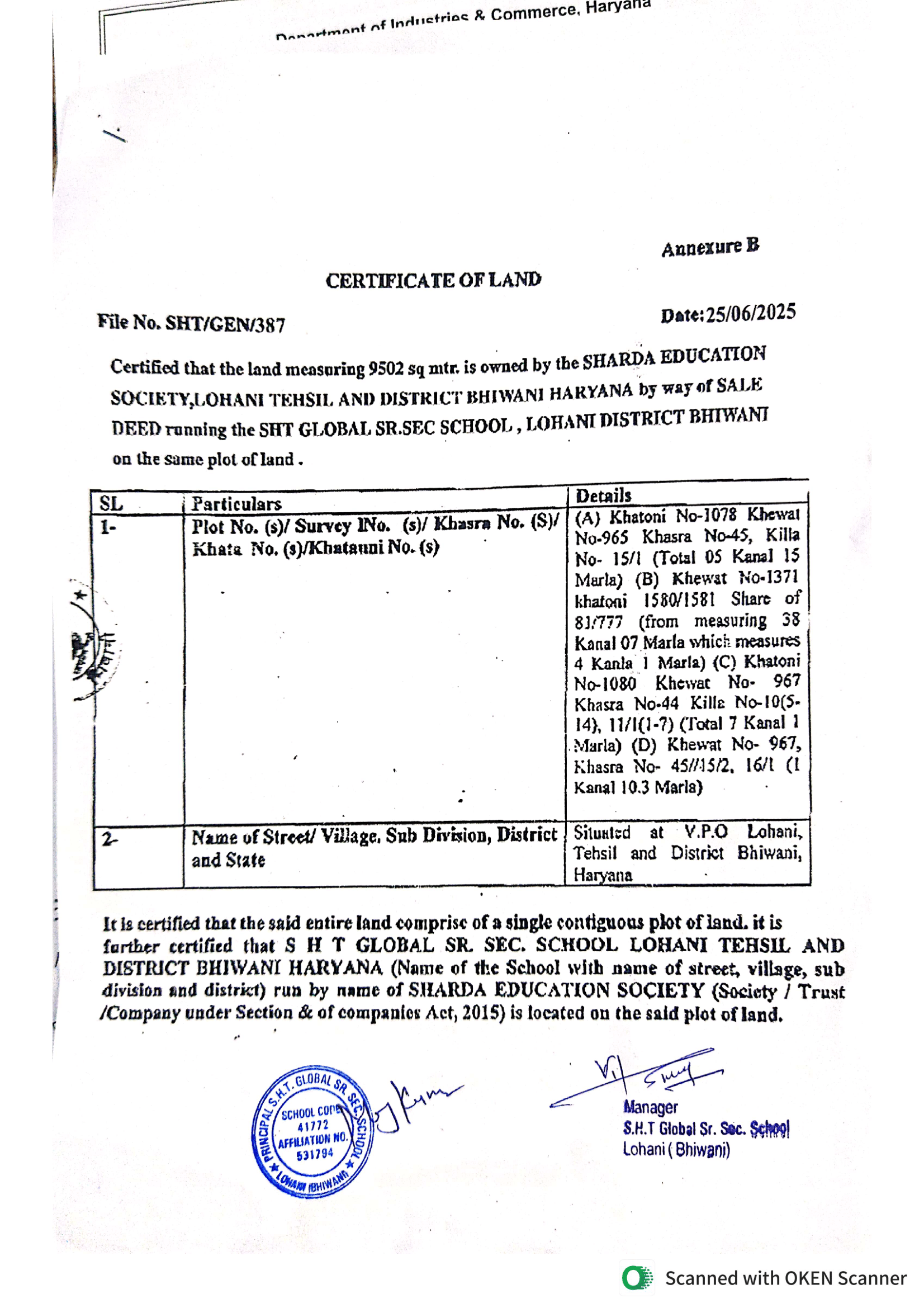 Certificate of Land